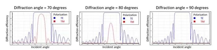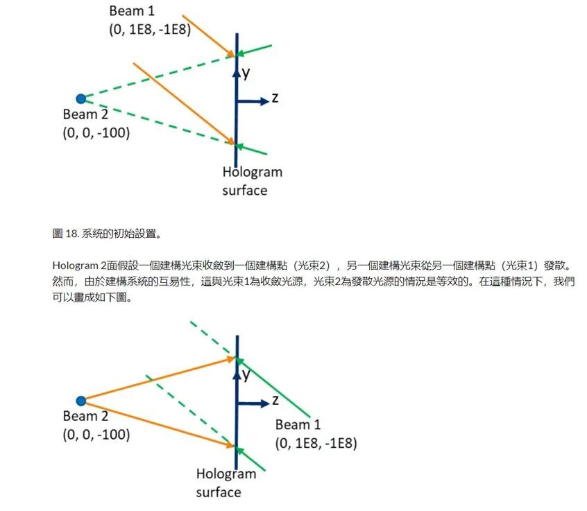 与其他类型的 Flat Optics 相比, 全息图的主要局限性是什么? 答:与表面浮雕光栅 (SRG) 相比,我猜全息图更受材料选择的限制。虽然SRG也仅限于一些常见的材料,但是,SRG 可以是多层的。您可以组合多种材料,并实现所需的一些特殊 性能。 在设置全息图构造光时, 如何定义波前发散或收敛? 答:如果两个构造点对应的构造光束都是会聚或发散,则应选择序列模式下的”全息面 1”,或者如果使用其他全息类型的面或对象时,将参数 Holo Type 设置为 1。 如果其中一束构造光是发散,而另一束为会聚,则应选择序列模式下的"全息面2”,或者如果使用其他全息类型的面或对象时,将参数 Holo Type 设置为 2。 一个常见的疑问是,当Holo Type =1时,为什么会聚或发散属于同一面型,或者当 Holo Type =2时,为什么我们不需要确切地指定哪个是发散的,哪个是会緊的。原因是基于建构系统的互易性,如果互换两束光的状态(会聚或发散),实际上构建的全息图跟互换前是一致的。 ![]() 这与计算全息图的过程相同吗? 答:尽管计算全息图 (CGH) 名称中有一个”全息图",但它实际上不是由我们的模型假设的两个光束干涉制造的。但是,对于位相型 CGH 来说,您可以简单地采用位相表面来模拟 CGH,例如 Binary 2 或 Zernike 标准相位面。这两种表面普遍地用于如 CCH 等应用的位相板设计。 衍射效率是否考虑了每束衍射光束的功率分布? 答:衍射效率核心仅考虑平面波作为输入和输出。如果您有个具有有限尺寸的光束,具有有限发散角,并且您想在这种情况下准确地模拟行射效率。此时建议建立一个光源模型,该模型具有角空间中对应的发散角和功率分布。利用该光源所计算出的衍射效率就考虑了原始的光束功率分布。 偏振入射光的全息图模型会发生什么变化? 答:此模型精确考虑了偏振,也就是电场分量 (Exr, Exi, Eyr, Eyi, Ezr, Ezi)。衍射效率会随着不同的偏振而变化。在衍射角为 90°时,TM偏振的效率为 0,如下图。我们的全息模型可以准确地考虑这一点。 ![]() ![]() |