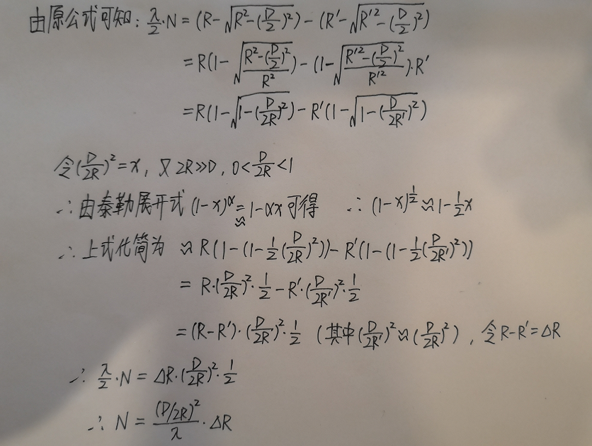 前几天写了一个光学设计公差分析中的光圈与曲率半径公差之间转化的帖子“公差分析中曲率半径公差与光圈的换算”,最后公式的转化未贴出来,昨天居然有一个之前我们公众号的粉丝,居然轻而易举推出了发给我了,非常赞,自己写帖子的时候也推了下 ,虽然推出了结果,但是过程太过潦草,也没弄出来,如下是这位朋友推导的手稿,只能说光学设计需要的就是这种能静下去的思维!