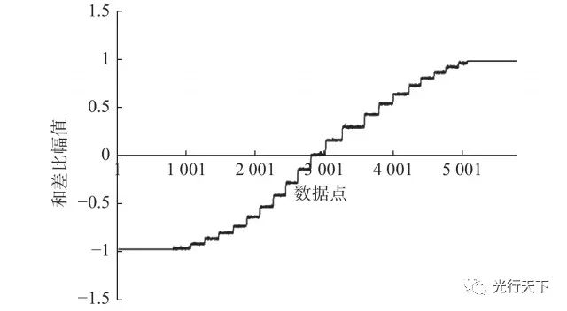 图11.软件仿真得到的和差比幅值 同时,在实验室搭建实物系统对仿真结果进行验证,如图12所示。