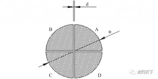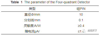 图1.四象限探测器示意图 本文仿真的四象限探测器参数如表1所示。