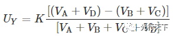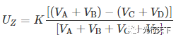 图3.探测系统模型 2. 系统仿真 2.1 和差比幅指令仿真 对于激光四象限探测系统,工作时光学系统接收并汇聚目标漫反射的激光光束,在探测器上形成圆形光斑,光斑使每个象限都输出一个信号,通过对各个象限输出信号的处理可以得到目标位置的信号。 定义4个象限输出的信号为VA、VB、VC、VD,进行和差比幅运算,可以得到沿Y、Z方向的偏移量所对应的值UY、UZ,再乘以系数K可计算出位置信息:
