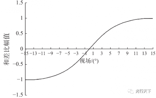 图11.实验系统及实验现场 实验时探测系统安装在转台上,随转台进行转动。转台每转动1°数据采集1次,转台运动范围为±15°,得到的实验数据如图12所示。 对比图11和图12可以看出,各视场角输出的和差比幅值基本一致,验证了仿真模型的正确性。