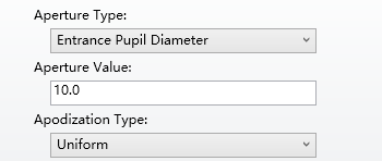 (2)建立两个Paraxial XY的理想光学成像系统 首先在孔径类型中选择Entrance Pupil Diameter,Aperture Value输入10,如下图:
