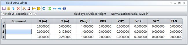 在Field Data里,选择“Object Height”,输入0,0.125,0.25,如下图: