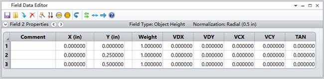 在Field Data里,选择“Object Height”,输入0,0.25,0.5,如下图: