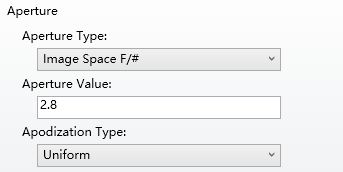 在孔径类型中选择“Image Space F/#”,ApodizationType选择“Uniform”。 如下图: