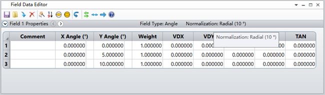 在Field Data里,选择“Angle(Deg)”,输入0,5,10,如下图: