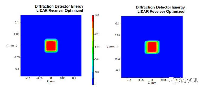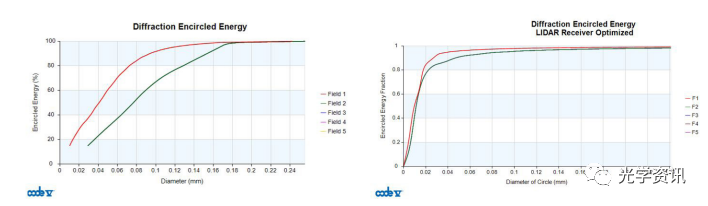 激光雷达接收器设计的水平和垂直FOV草图 均匀封闭能量的优化:使用CODE V中的封闭能量函数的简单过程